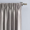Providing privacy and blocking out natural light, this room-darkening pinch pleated double-wide patio panel is the perfect pick for any room layout or restful retreat. This lightly textured fabric creates a soft shimmer for a rich look and the design's solid hue helps it blend with a variety of color palettes and aesthetics. This exquisite style features characteristics of any custom window covering, adding a rich and elegant look to your home. The separate lining creates an energy-efficient barrier that blocks out the cold and heat and also reduces noise. This double-wide single panel is perfect for hard-to-find wide windows, patio sliders, and French doors. Made from 100% polyester with a rich white liner, this piece is safe to toss in the washing machine for easy upkeep. These separately lined panels feature a 3-pinch pleat 4" header with back tabs. Each panel has 1" side hems, generous 4" bottom hems, and weighted corners that allow the panels to drape elegantly. LIGHTLY TEXTURED FABRIC: This richly woven textured fabric creates a soft shimmer for a sophisticated look. It is both casual and elegant, creating a warm natural look and feel in any space. This gorgeous and unique fabric creates the perfect amount of privacy and room darkening while allowing the curtain to hang gracefully and beautifully. The separate lining provides energy efficiency and also blocks out noise