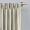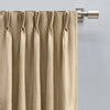 PINCH PLEATED WITH BACK TAB: A pleated header with back tabs creates a custom look without needing drapery pins and a special traverse rod. Simply slide the decorative rod through the back tabs for an easy hang. However, this dual header allows for hanging style with drapery pins. One double-wide patio panel. For proper fullness and coverage, order curtains that are 1-1/2 times the width of the window area.