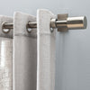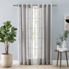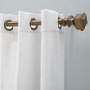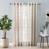 Sheer, chic, and fit for elevating any room in your home, this lovely Solid Sheer Grommet Panel is an essential piece for any home decorator. Crafted from a linen and polyester blend, this decorative design features a versatile solid hue and a sheer look that lets the sunshine through. A modern grommet design on top lets you hang the panel effortlessly, while the subtle texture from the linen brings dimension and warmth to your window. Let this Solid Sheer Grommet Panel add a dash of timeless charm. Simply use it to highlight your master suite window, then complement its subtly stylish look with a crisp white comforter, a clean-lined chest, and a glowing chandelier overhead. Single panels each measured at 52" wide and offered in varied lengths: 63", 84" and 96". Color white, natural and toffee have antique bronze grommet finish and grey has brushed nickel grommet finish. Total of 8 grommets per panel with center diameter of 1.5". WOVEN TEXTURED LINEN-BLEND FABRIC: This loosely woven textured fabric is both casual and elegant, creating a warm look and feel in any space. The rich polyester lining creates the perfect amount of privacy and light filtering, while allowing the curtain to hang gracefully and beautifully in any room GROMMET STYLE: A modern grommet style makes for an elegant, pleated look. This 52" wide panel features 8 metal grommets measuring 1.5" inside diameter. To hang, use a decorative rod to match grommet finish with a diameter of up to 1.25" EASY CARE: This product is machine washable, making it quick and easy to get your curtains back into tip top shape when the time comes. This fabric has been hand chosen for both durability and quality, and you can be confident that it will endure the test of time. For the best look, we recommend that window coverings be steamed or ironed out of the package EXPERT CRAFTMANSHIP: As curtain-makers for 30+ years, we are experts at creating the perfect window covering. No detail is overlooked, and our products are designed to hang beautifully within your home, giving you a very custom look and feel 100% SATISFACTION GUARANTEE: If you are unhappy with your product for any reason, please contact us and we will correct any issues within 48 hours