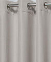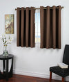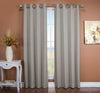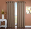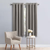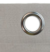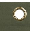 The solid blackout grommet curtain panel features a casual handsome face fabric woven with a layer of black yarns sandwiched between two layers of colored yarn, plus a separate liner that is also woven with black-out yarns. The panel drapes beautifully while providing unbeatable protection from the harsh outside light. Adel Solid Blackout Thermal Grommet Single Curtain Panel saves energy, provides privacy, creates an air barrier for extra insulation to keep out the cold and helps to protect the room from drafts. These 50” wide panels are available in 63” 84” and 96” lengths. Additional features include a 4" bottom hems, 1" side hems, and weighted corners. The curtain slides easily through the 1.5" diameter opening in the metal grommets, using a curtain rod up to 1.25" in diameter. Available in 5 colors: Woodland Green, Driftwood, and Floral Rose come with antique bronze grommet finish and Parchment and Stone has brush nickel grommet finish.
