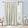 Independently U.S. laboratory tested certifies this curtain is 99.8% efficient in blocking out light! The perfect sidekick for movie marathons and lazy Sunday sleep-ins, room darkening curtains keep entertainment areas almost as dark as the theaters. This heavyweight curtain panel features a superior, triple weave fabric construction that blocks out light and stops heat and cold from penetrating through the density of its construction, which invisibly integrates black yarn into the pattern of colored yarns. This single 112" double wide curtain panel is perfect for patio doors and double wide windows. This panel has a generous 4 inch length rod pocket and back tab. It also features 1" side hems and an extra deep 5" bottom hem. The rod pocket with back tab header makes the panel open and close with ease or, for a decorative effect, place the curtain rod through the belt loop tabs on the back and your Beretta Double-wide Solid Blackout Thermal Rod Pocket with Back Tab Curtain Panel will now have pleats! Available in both 84" and 96" lengths and comes in 8 bold colors. Machine washable. Tumble dry low. Imported. TRIPLE WEAVE WOVEN FABRIC: This unique fabric is both casual and elegant, creating a warm natural look and feel in any space. This gorgeous fabric is comprised of black threads and colored yarns that effectively blocks light and insulates against heat and cold.