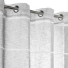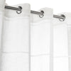 This semi-sheer grommet single curtain panel is a beautiful, slightly delicate, loosely woven faux linen semi-sheer grommet curtain panel with a raised horizontal chenille yarn striped that repeats through the body of the curtain every 8". This lovely, light-filtering fabric adds a casual, flowing, yet elegant texture to any room. This 55" wide curtain panel has an airy feel and compliments any room decor. These panels are available in multiple lengths 63", 84" and 96". Each curtain panel has 8 grommets (1.5" inside diameter). This superior fabric is 100% easy-care polyester. Machine washable and line dry. Imported. Available in three colors: White/White, Grey/White and Natural/White all with silver grommets WOVEN FABRIC: This unique fabric is both casual and elegant, creating a warm natural look and feel in any space. This gorgeous fabric has an open weave that hangs beautifully.